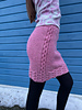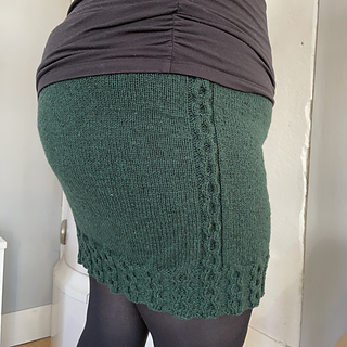 This is skirt is knitted from top to bottom. At the waistband is a elastc band hidden. A cable pattern is knitted along the outsides of the skirt, an then throughout the bottom hem.