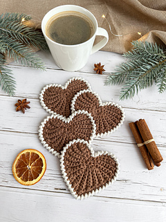 ♡ Frejdis heart coasters are beautiful, timeless, and the perfect handmade gift for someone you love. Crochet them in warm gingerbread tones for Christmas – or in soft pink and red for Valentine´s Day. A handmade detail that brings a touch of love to your table all year round! ♡