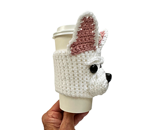Crochet your very own White French Bulldog Cup Cozy — a charming, realistic Frenchie design that’s as cute as it is delightful! Perfect for coffee lovers and dog enthusiasts alike, this pattern lets you create a delightful handmade cozy to make for yourself or gift to a fellow French Bulldog lover.