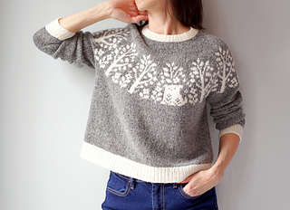 Freya, the sister pattern of Fiona, reminisces an endearing morning stroll with my dad and my first childhood puppy, exploring through a trail of handsome dwarf trees and beautiful blooms. The slightly cropped sweater is worked seamlessly in the round from the top down, and has short-rows to raise the back neck for a comfortable fit. Be it with a dark or light background color, this beautiful stranded colorwork sweater is equally delightul to knit and to wear.