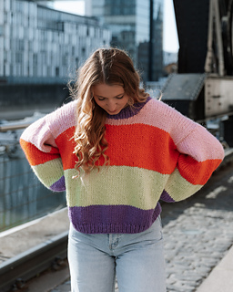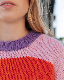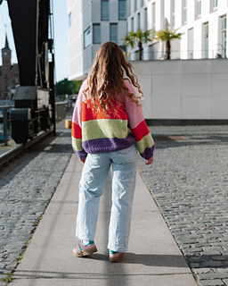 The FREYA Sweater is the perfect beginner’s project for venturing into your first hand-knitted sweater. Its simple design makes it easy to knit while offering plenty of room for creativity. Whether plain and single-colored, colorful with four different colors, or casually striped in two colors—anything is possible.