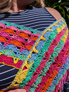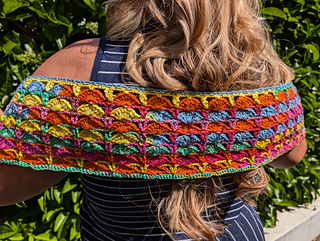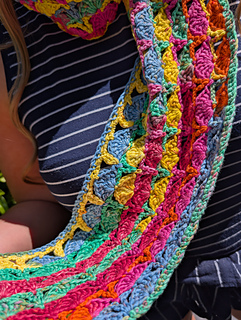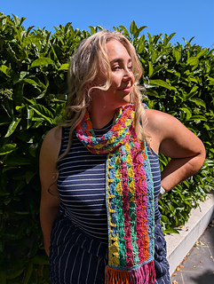 Using 2 x 100g skeins of Eco Organic Cotton Hand Paints, a soft, sustainable 100% organic cotton, this scarf showcases vibrant colour transitions and a stunning peacock-style stitch pattern.