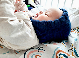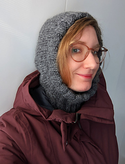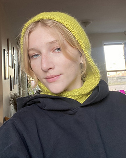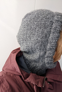 Begonnen wird mit dem 2x2 Rippenbündchen, welches dann doppelt gelegt wird. Danach wird glatt rechts die Kapuzenform gestrickt, welche mithilfe von German Short Rows geformt wird. Die Kapuze wird mit dem Maschenstich geschlossen, dann wird das Halsbündchen in 2x2 angestrickt.