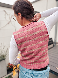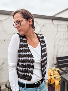 Friedas MosaicVest ist wie gemacht für Tage, an denen du eine leichte, wärmende Schicht brauchst. Ob beim Spaziergang, im Büro oder gemütlich zu Hause. Das optionale Streifenmuster verleiht dem schlichten Schnitt ein dezentes Extra, kann aber auch weggelassen werden. So entsteht ein zeitloses Strickstück, das sich vielseitig kombinieren lässt und lange Freude bereitet.