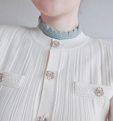 This frill neck warmer is designed to be worn layered inside outerwear or knit garments, adding both warmth and a decorative accent to outfits with an open or minimal neckline.