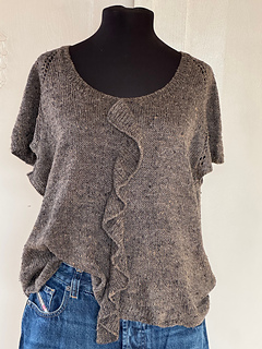Für FRILLS FOREVER wird das Garn mit größeren Nadeln verstrickt als empfohlen, wodurch ein sommerlich leichtes und leicht transparentes Gewebe entsteht. Gestrickt aus atmungsaktiven Sommergarnen wie Seide, Leinen, Baumwolle oder Viskose ist es ideal für warme, sonnige Tage.