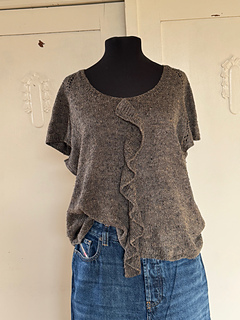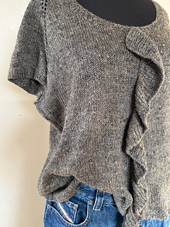 I’ve got a soft spot for frills. They turn a simple, basic piece into something playful and feminine. FRILLS FOREVER is a top-down, airy raglan with cap sleeves and a frilled detail that lifts the whole design. It adds movement and character – that’s exactly what this shirt is all about.