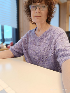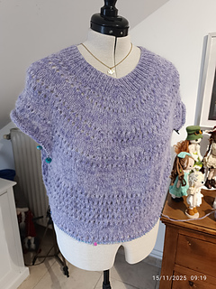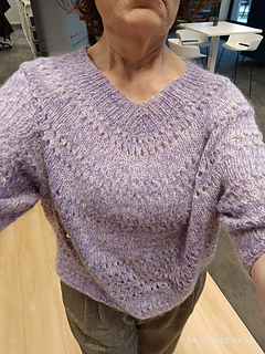 Cela correspond tout à fait à ce pull tricoté en circulaire avec un merinos fingering que j’ai teint à la maison, avec les pigments Lilas de teinture Jacquard,.