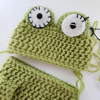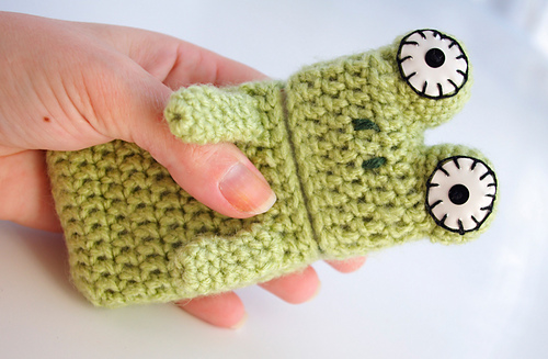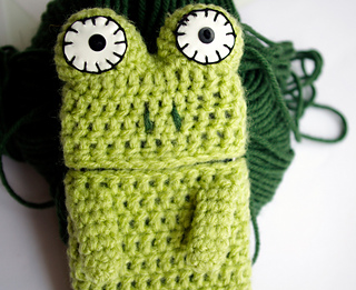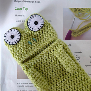 You can customize the case with different yarn colors or small details to create your own frog character.