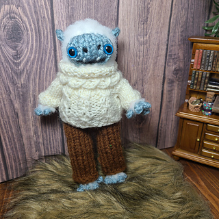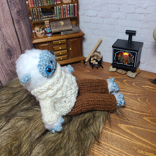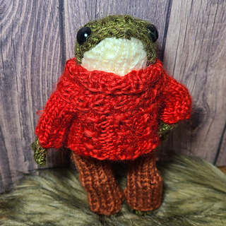 Scared of cables? This pullover for your dotpebble’s frog has that cozy cable feel and look without actually using them! Knit primarily in the round for minimal seaming, this pullover features a turtleneck collar, yoke and faux cable design. Perfect for snuggling up by the fire on cold winter nights