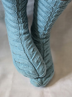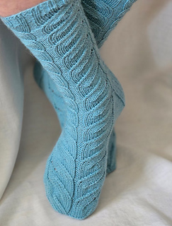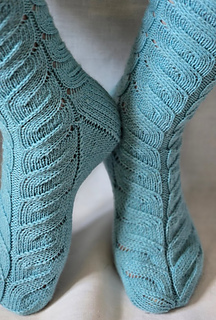 Elegant, leafy fern fronds decorate these socks from the top down to the tip of the toe - the pattern stitch transitions into the toe shaping without even thinking about it!