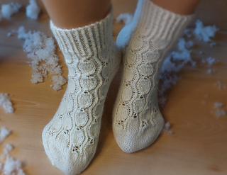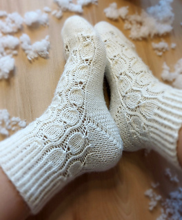 Skills required: basic knitting, decrease, increase, basic sock skills, short rows, German short row heel, short row toe, Kitchener stitch, cable.