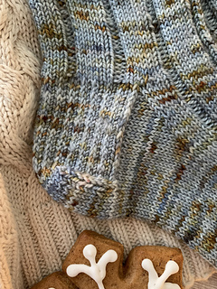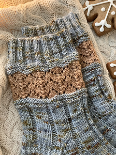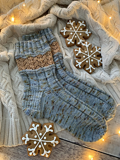 The Frosted Gingerbread Socks pattern was designed in collaboration with Beth at Beehive Yarns for her Christmas Eve Cast-on Box for 2025.