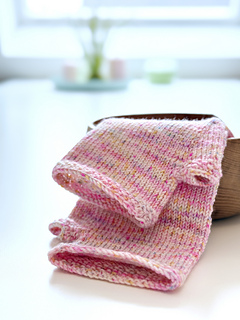 Danach strickst du so weit, wie es für deine Finger angenehm ist und beendest das Ganze wieder mit einem Perlmuster-Abschluss.