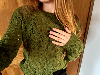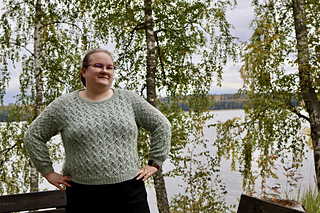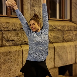 Frozen Dreams is a dreamy, romantic pullover with an all-over lace pattern. The sweater is worked seamlessly top-down and features European shoulder construction where all shoulder shaping is done without short rows and the shoulder seam sits at the back. The sleeves are worked in the round without any decreases until just before the cuff ribbing. The cuff and hem ribbing are finished with Italian bind-off and the neckline ribbing is folded and bound off sewing the stitches onto the WS. The lace pattern comes with both charted and written instructions.