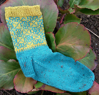 They can be worked in Regia 4-ply or any sock yarn of comparable weight, and use less than 50g of the contrasting colour (perfect for using up leftovers!).