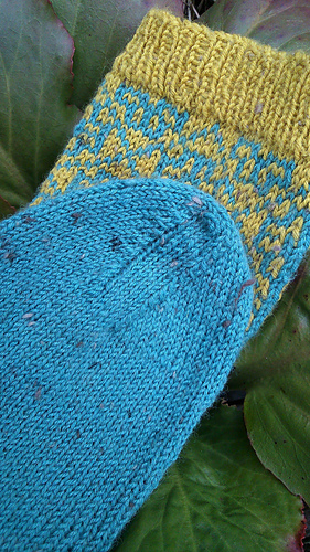 Elles sont à tricoter en 4-ply de Regia ou toute laine à chaussettes d’épaisseur comparable. Elles sont parfaites pour utiliser le fil restant d’un autre projet puisqu’elles utilisent moins de 50 grammes de la couleur-contraste.