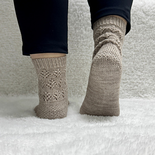 The cracked ice of a frozen lake on a winter morning gave me the inspiration for these socks.