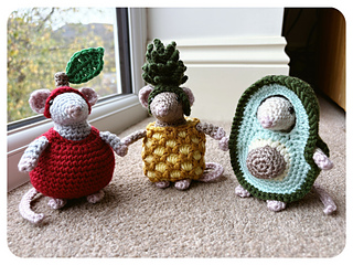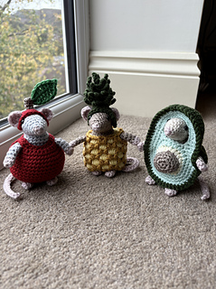 This pattern is for the mouse and its 3 fruit costumes – an apple, an avocado & a pineapple!