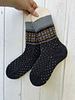 Garnmengde: Farge 1 – 50 g, farge 2- 25 g og farge 3 -15 g Pinne: 3 mm rundpinne