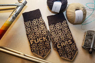 Prepare to show off your love of bikes and become the envy of your urbanist friends with these “Fuck Cars” Mittens! Inspired by my husband, I designed these mittens for those of us who don’t let cold weather stop us from biking, scooting, walking, and generally living life outside of a car. The extra layer created by the stranded pattern makes these mittens doubly warm.