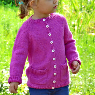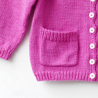 The Fucsi Cardigan is a timeless raglan-style cardigan worked from the top down in one piece, back and forth on circular needles, with raglan increases. The sleeves are knitted in the round using circular needles with the Magic Loop technique or double-pointed needles. Symmetrical patch pockets are sewn onto the front panels after the cardigan is finished. Easy to customize, this versatile cardigan allows you to adjust the body length to suit your personal style. It is designed with 4–6 inches / 10–16 cm of positive ease at the chest.