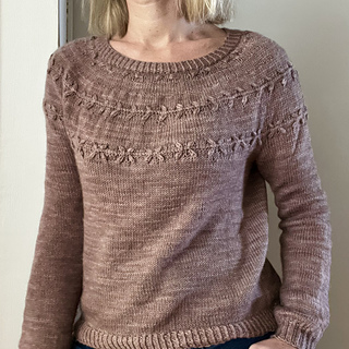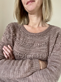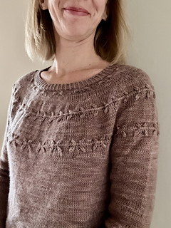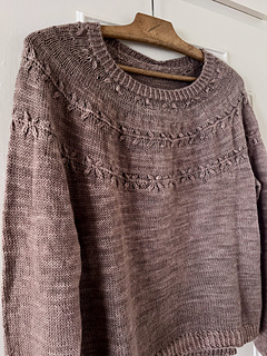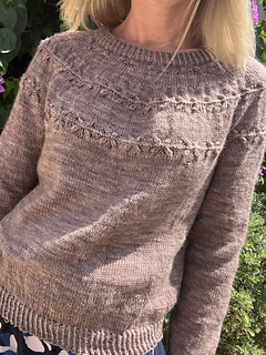 Fugue is worked in the round from the top down seamlessly, starting at the neckline. The circular yoke is worked in a simple and beautiful textured stitch pattern. It ends with a few raglan increases.