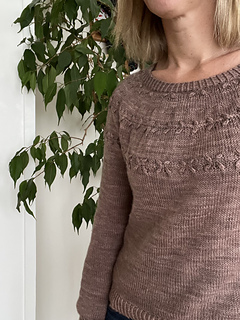 The back is shaped twice using short rows to lengthen it, improve the fit and comfort. Then sleeves stitches are picked up and worked in the round in Stockinette stitch.