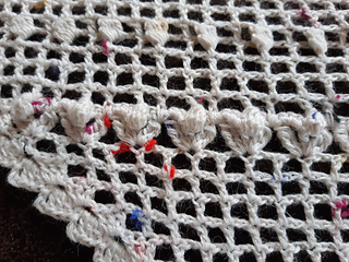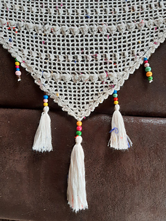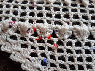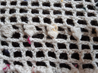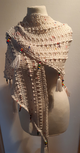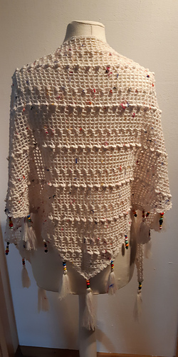 Für mein Tuch habe ich etwa 1000 m verarbeitet, wenn ich die Quasten mit einberechne.