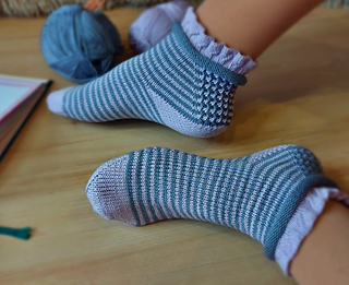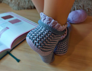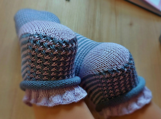 Skills required: basic knitting skills, decrease, increase, basic sock skills, short rows, gusset, turning the heel, short row toe,Kitchener stitch.