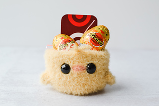 This no-sew pattern is written in U.S. crochet terms, complete with clear instructions and pictures to help you along the way. Fuzzy Chick Gift Buddy is crocheted in the round/continuous spirals without joining the rounds. I suggest using a stitch marker or different color yarn to keep track of each round. Fuzzy Chick Gift Buddy is crocheted in bulky (5) fuzzy yarn and is approximately 2 inches tall. Be aware that size may vary depending on the yarn and hook size used. Gauge is not particularly important, just be consistent with the tension you are using. And most importantly, have fun!