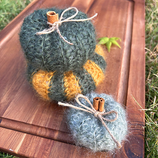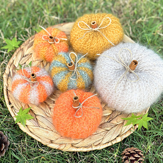 Cozy autumn vibes in every stitch — soft mohair pumpkins with the warm scent of cinnamon.