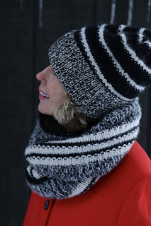 Hello, Fuzzy Frequency! Marled rib sections mingle with classic, whimsical stripes in this charming wrap and coordinating hat set. It all adds up to a duo that’s Cozy with a capital “C”!