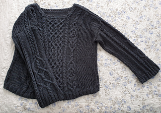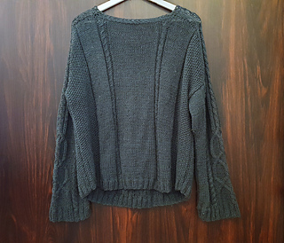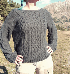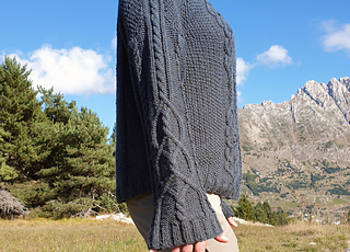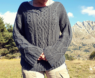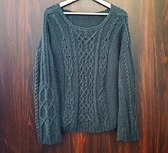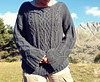 Classic saddle shoulder Aran knitted jumper pattern with Viking / Celtic cables, worked flat in 4 pieces (front, back, 2 sleeves) and assembled by seaming.