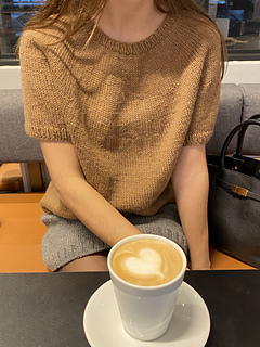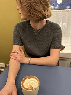 Our classic knit blouse is made with Drops Lima a blend of wool and alpaca. The crewneck knit has a soft and comfortable silhouette and a regular fit with a thin rib. The model is wearing a size s.
