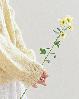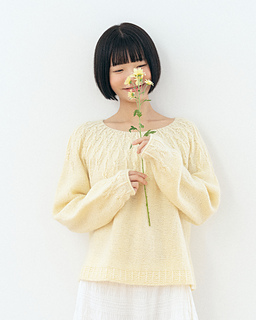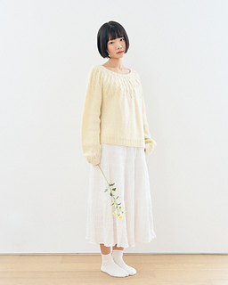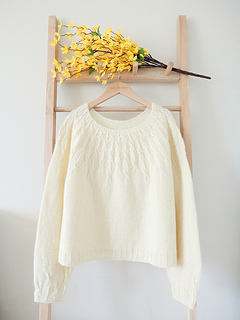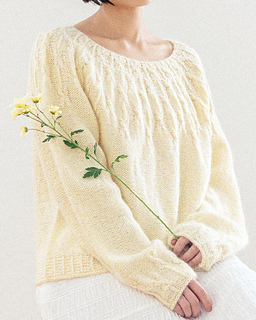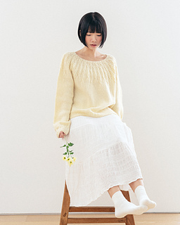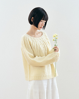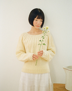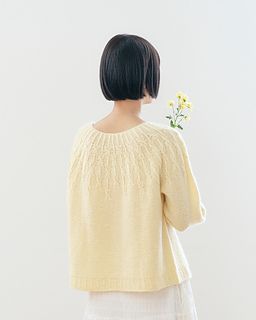 ‘Gaenari Sweater’ is a circular yoke style sweater inspired by the Gae-na-ri (forsythia koreana), worked from the top-down.
