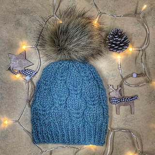 The pattern features simple knit, purl and cable stitches beginners. Special stitches and knitting terminology are explained in the pattern.