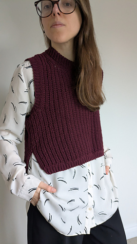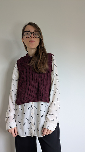 The pattern comes in cropped and full length version for each size. The pattern covers all sizes from XS to 5XL. The circumference of the vest goes from 84 to 170 cm - including 10 cm of positive ease.
