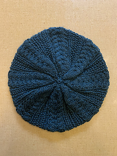 The Garden Path beret is a free, one-size hat pattern using alternating cabled and textured stitches.