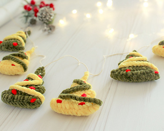 Garland are quick and easy to crochet and require only a small amount of plush yarn.
