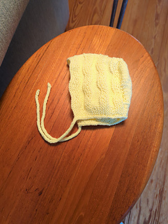 This bonnet has two versions: one with wavy garter stitch sections and another with straight garter stitch sections.