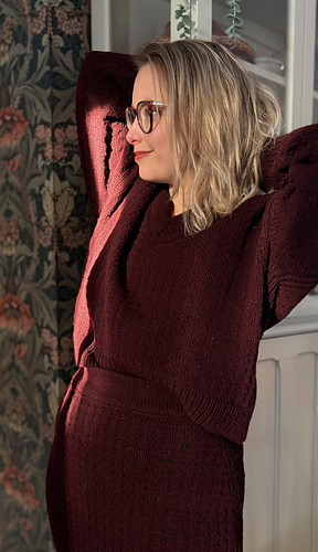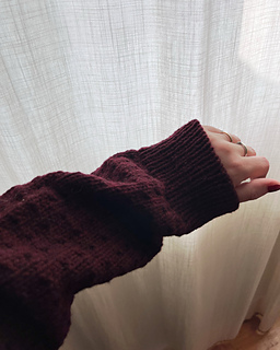 YARN: 5 (5) 5 (6) 6 (7) 7 (8) 9 balls of Rerum Natura – Gilliatt, 274 yds | 250 m per 100 g. The sample shown is knit in the color Merlot.