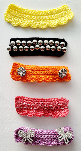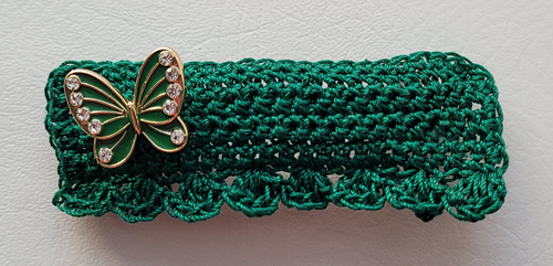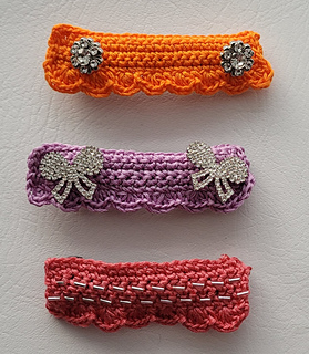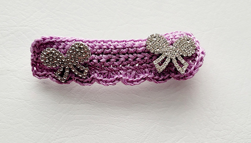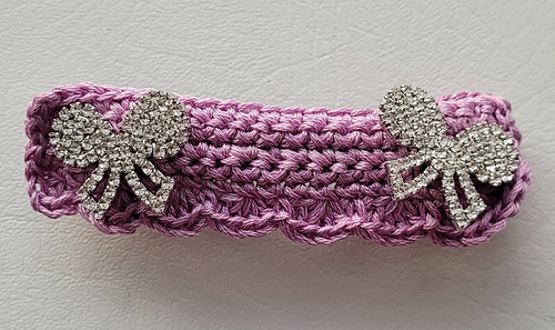If you never tried creating a hair clip before, here is a great opportunity for you to try. This pattern is a small project for you to learn how to create one. To get the beauty of the hair clip we use decorative buttons. For the yarn we use DMC Embroidery Floss. We used 1 embroidery floss to complete our project. I use a light purple but feel free to use whatever color you prefer. The hair clip comes in only one size. The approximate finished measurement of our hair clip before attaching it to the barrette clip is 4” long. Additional supplies we will need are barrette clip, sewing thread, sewing needle, hot glue gun and glue sticks. Give it a try and see how yours comes out.