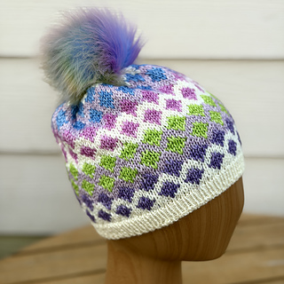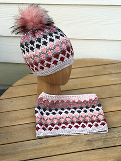 Worked in stranded colorwork, using my 10 skein DK Mini Skein sets, the GEM hat & cowl are knit in the round, starting with a waste yarn tubular CO. Cowl ends with a tubular BO. A fun, fast knit that is a great introduction to stranded colorwork.