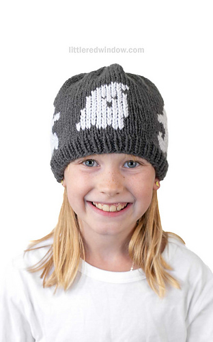This adorable Gentle Ghosts Hat Knitting Pattern is a quick and easy knit for Halloween. This easy baby hat knitting pattern includes instructions to knit a cute ghost hat in any of six sizes from newborn to toddler. This ghost hat pattern is knit in the round with worsted weight yarn. The adorable ghosts are added at the end with duplicate stitch. It’s a fun and easy Halloween knitting pattern!