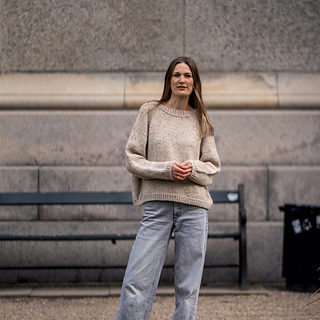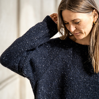 G e n t l e sweater, with its oversized look and timeless expression, is a sweater that drapes naturally on the body and fits seamlessly into most wardrobes. It is knitted in a tweed yarn quality, which gives the sweater a lively and tactile character, where subtle color variations add depth and personality.