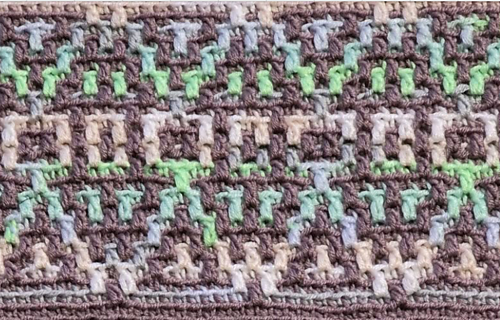 Tento moderní vzor je vhodný na deky, polštářky a další výrobky. Je háčkovaný technikou overlay mozaikového háčkování.
