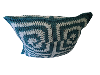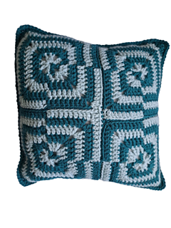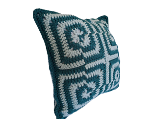 This pattern uses granny squares to make a geometric pattern pillow (same front and back).
