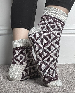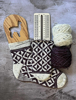 These socks work beautifully with both solid and lightly speckled yarns, allowing the motif to shine. Knit from the toe up with a classic heel, they’re suitable for confident beginners and experienced sock knitters alike.
