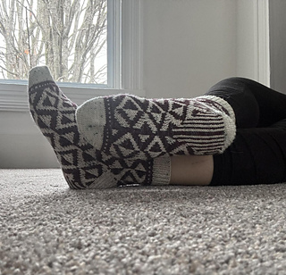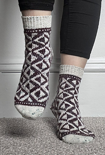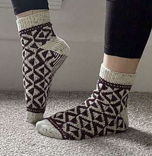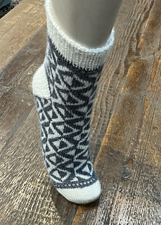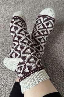 Geometrix Socks are a fun and bold design featuring clean geometric lines and an engaging, easy-to-follow repeat. The pattern is written for comfortable, enjoyable knitting, whether you prefer watching the shapes emerge or love a rhythm you can relax into.